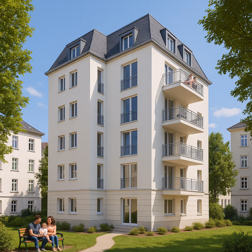 Der Neubau an der Richard-Lehmann-Straße verbindet urbanes Stadtleben mit hochwertiger Architektur und energieeffizienter Bauweise – ein Zuhause für alle, die Stil, Komfort und Nachhaltigkeit schätzen.